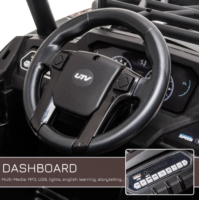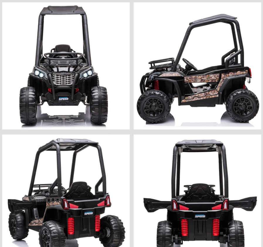 12V Kids Off-Road UTV Electric Ride On Car Black Camouflage High Roof Remote Control Lights MP3 Adventure Toys