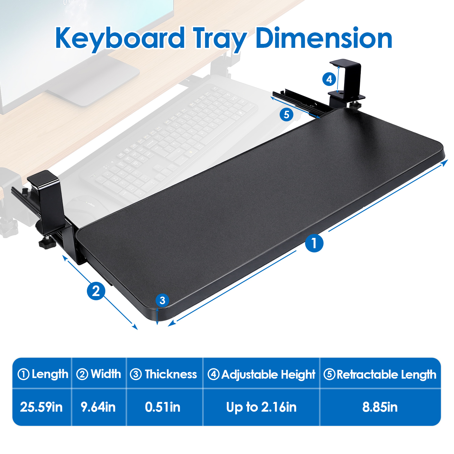 *Save Space Keyboard Tray*:Our under desk keyboard tray provides an extra storage surface and is spacious enough to hold keyboard,mouse and other office accessories. Effectively help you to save desktop place and make your desk look cleaner and well organized.