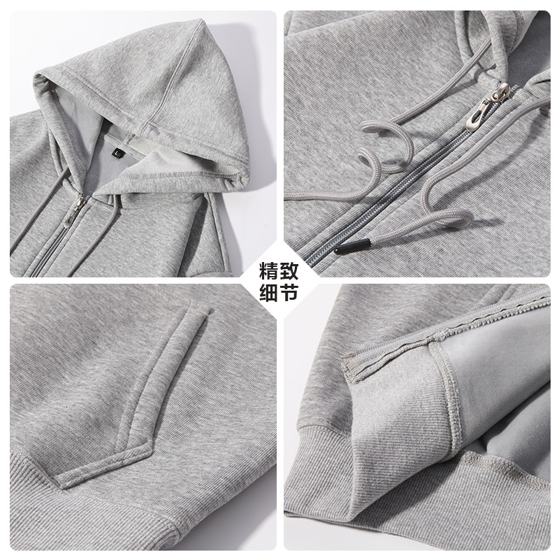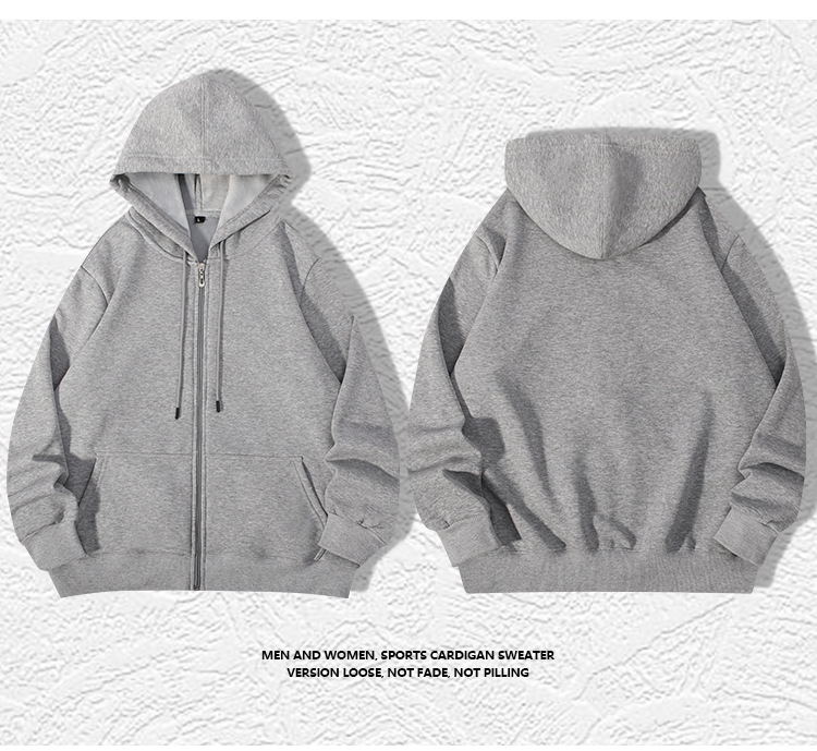 420g European And American Plus Size Zipper Hooded Sweater Men Light Gray L