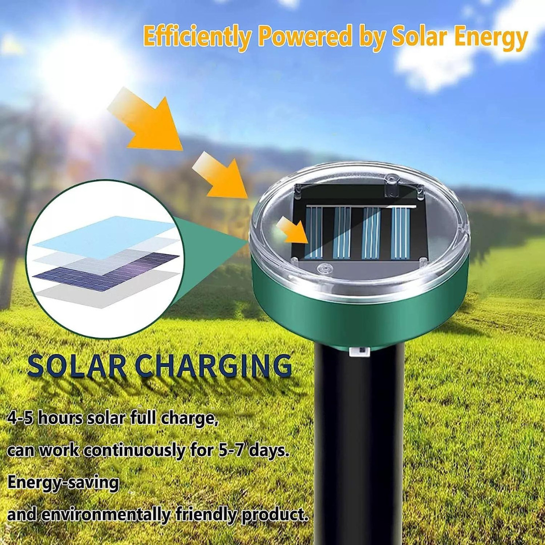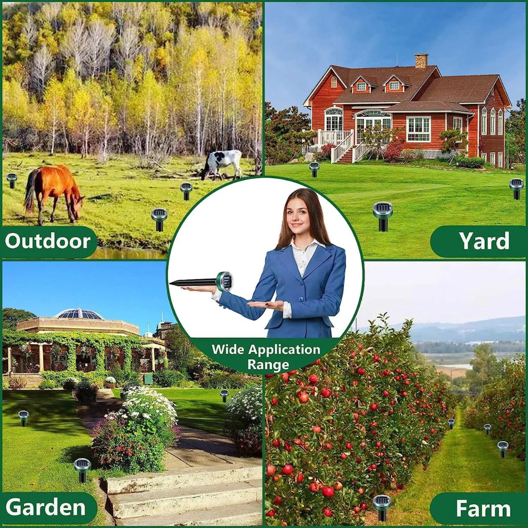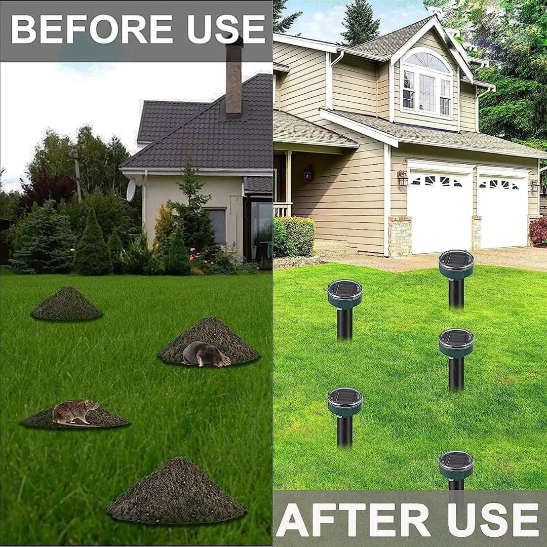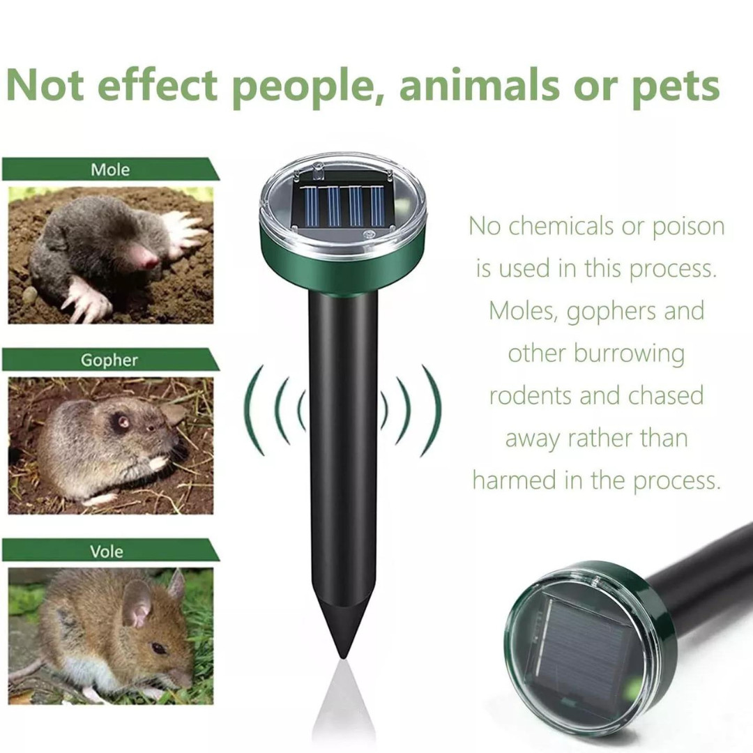 Once placed into the soil and activated, the device emits sonic pulses every 30 seconds, creating a highly irritating environment for moles, gophers, mice, voles, snakes, and other underground rodents, encouraging them to leave the area safely.