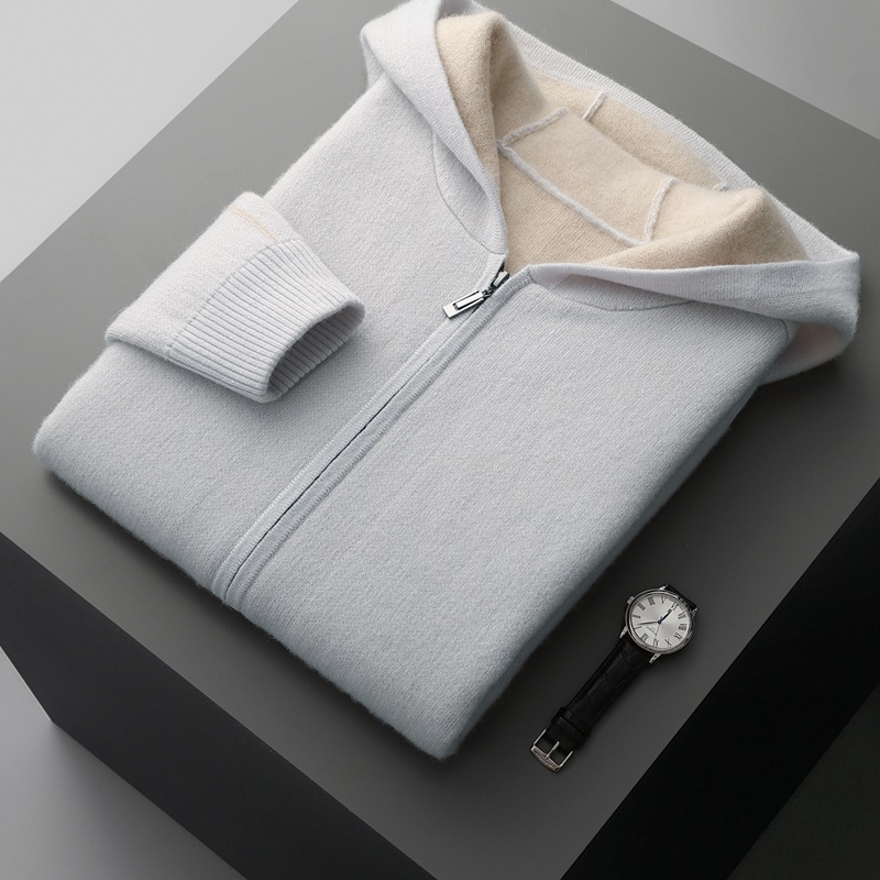 Autumn And Winter Men's Cashmere Thickened Half-high Collar Zipper Cardigan Sweater Dark Gray L