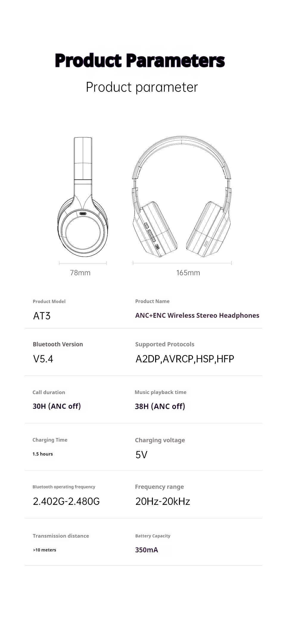 AWEI ANC ENC Hybrid Feed Active Drying-Reducing Bluetooth Headset For Wearing