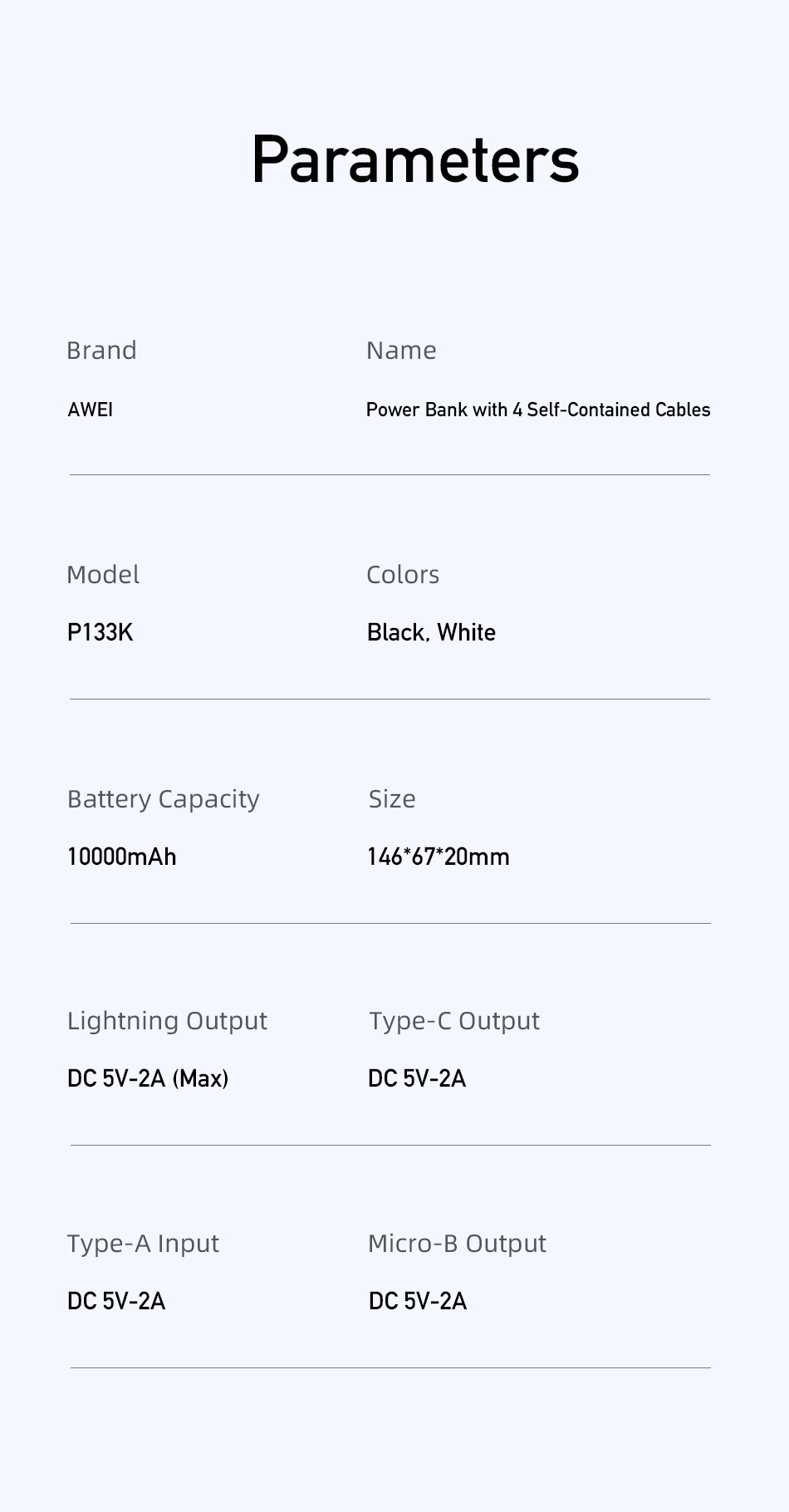 AWEI Built-in Wired Intelligent Multi-Output Power Bank