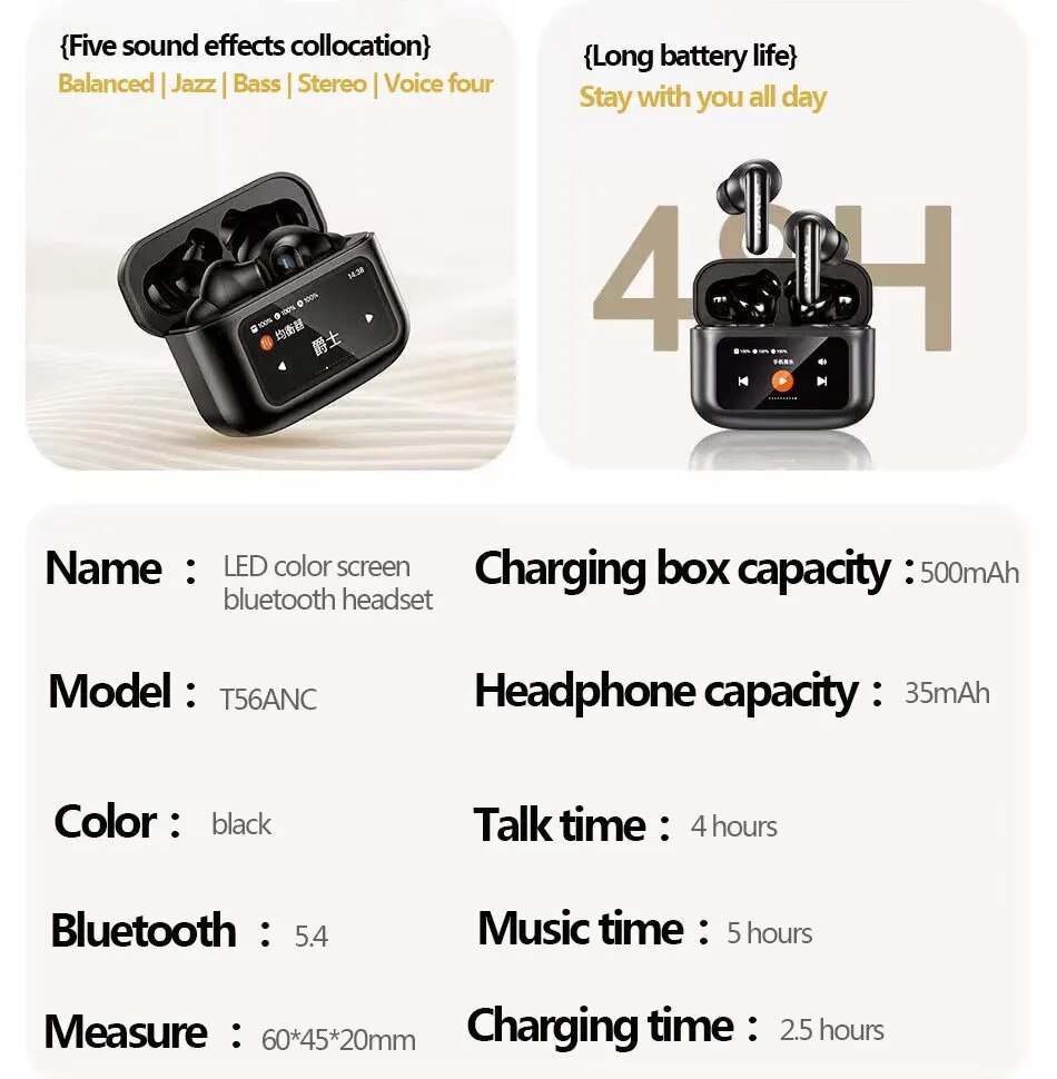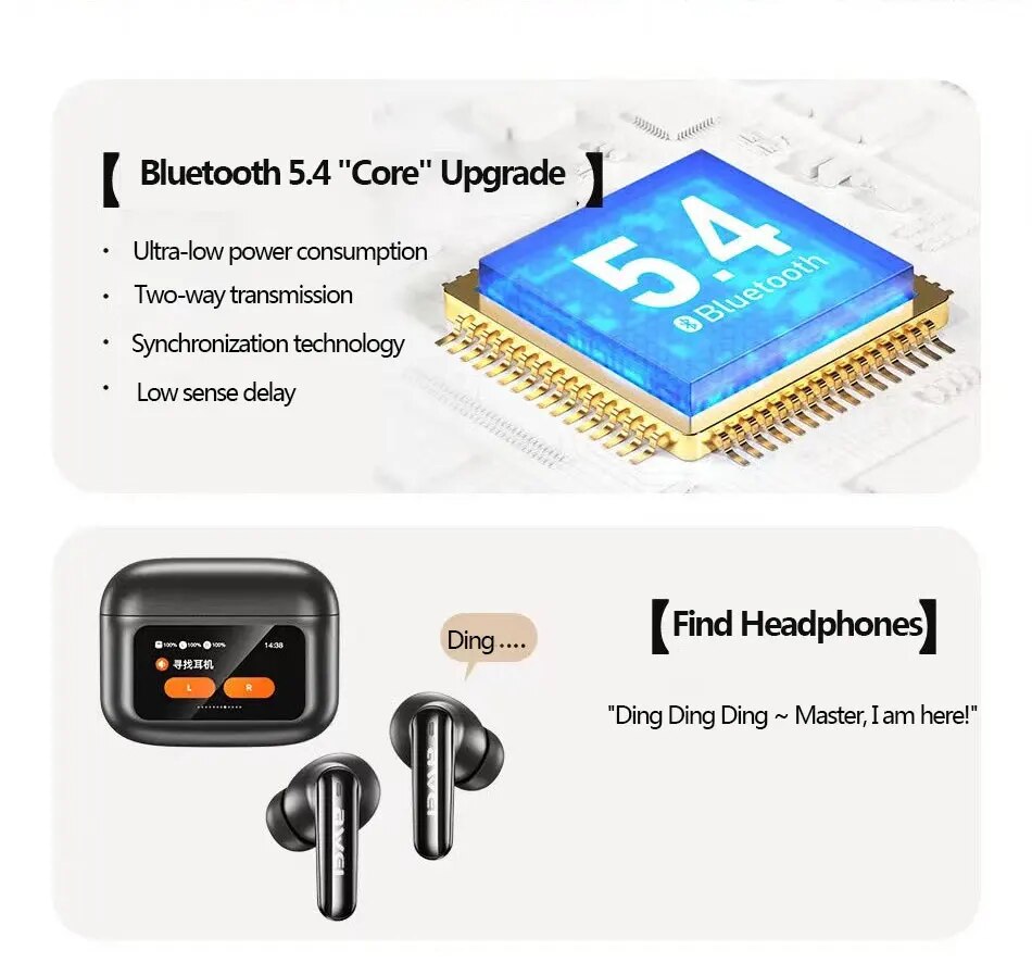 AWEI LED Touch Screen Active Noise Cancelling Bluetooth Headset