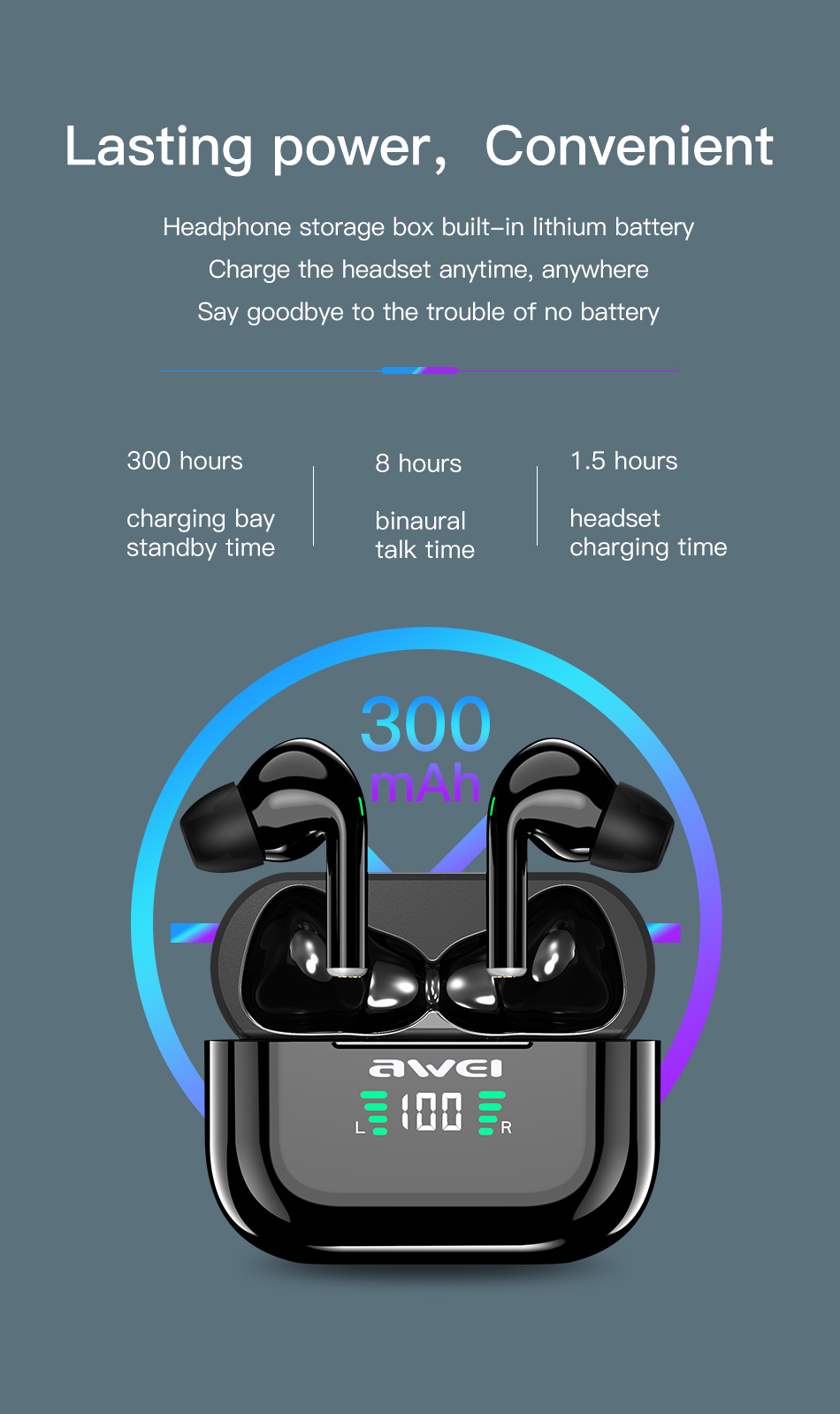 AWEI True Wireless Bluetooth Charging Pod Headphones