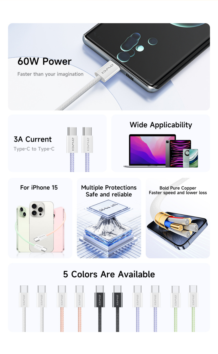 AWEI TYPE-C to TYPE-C Braided Rope 60W Fast Charging Cable (2m)