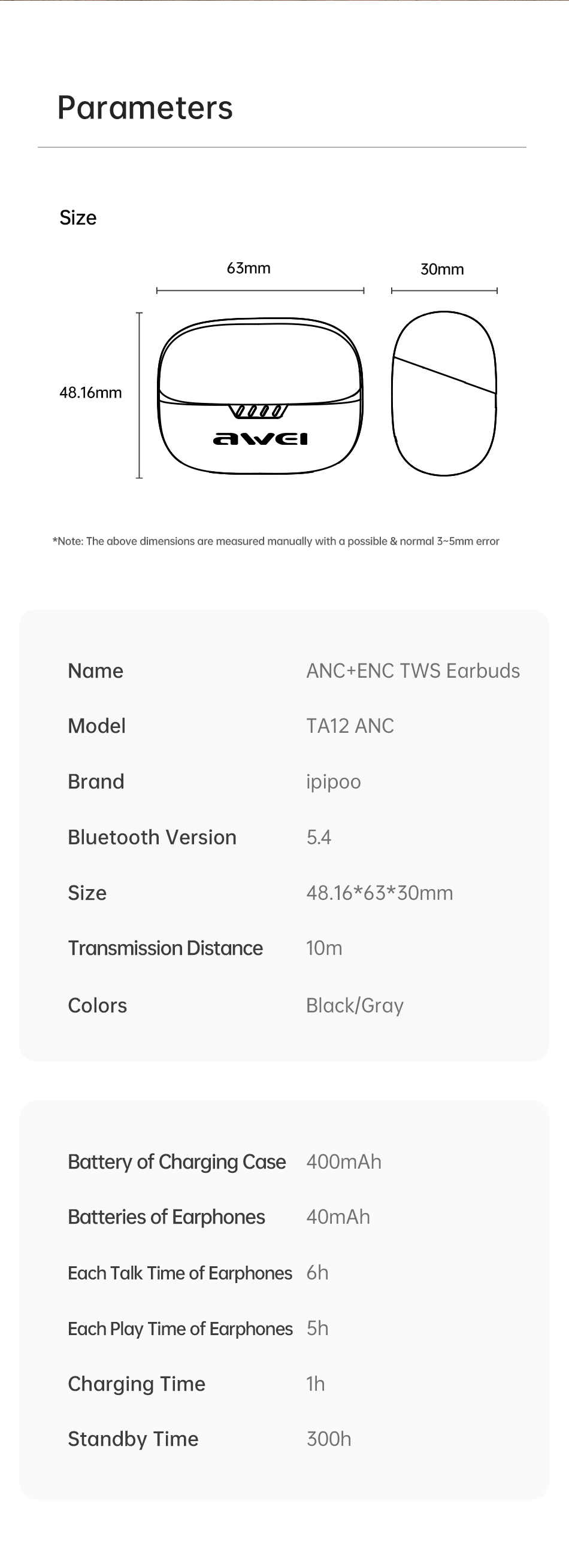 AWEI6 MI ANC ENCA NOISE CANCELLING BLUETOOTH HEADSET