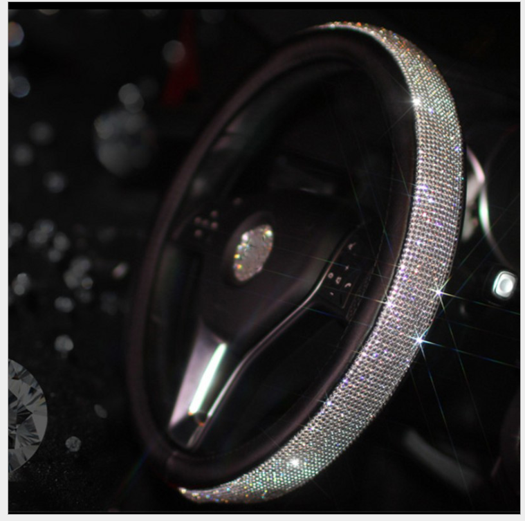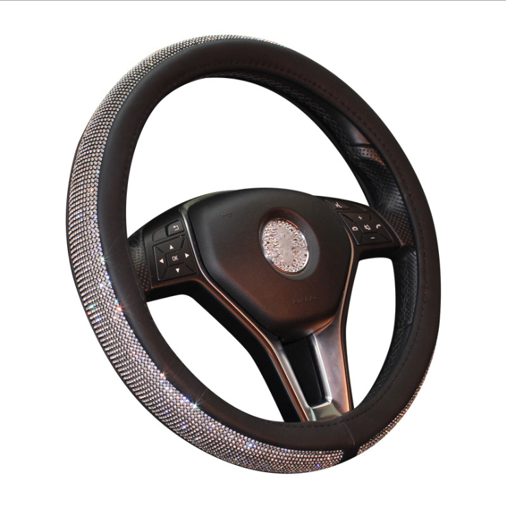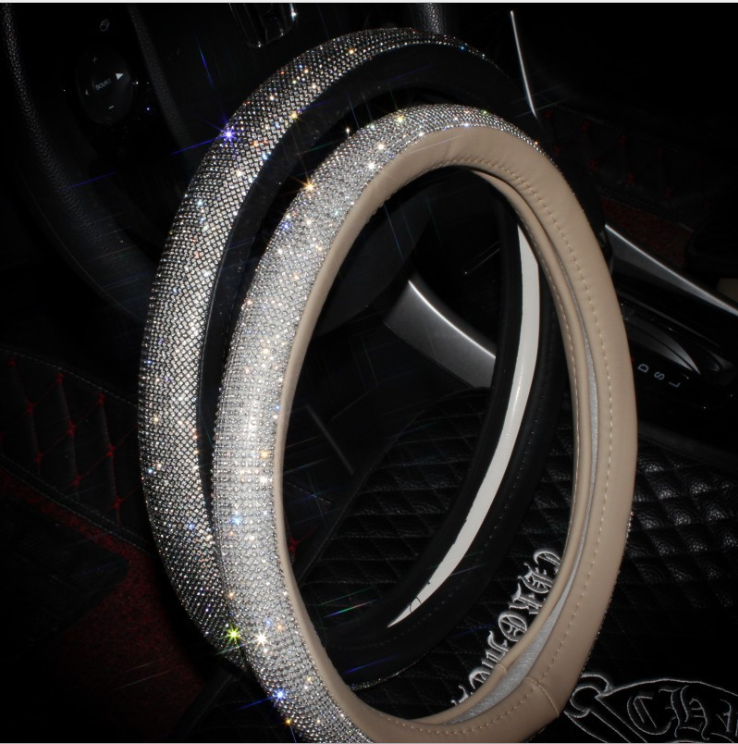Car steering wheel handle set Four seasons universal really cute feminine cartoon leather anti-slip handle SilverC 13x8cm
