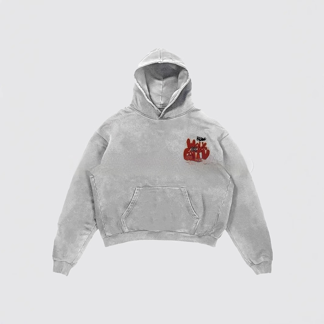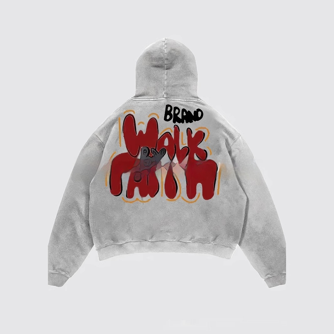 Casual Letter Print Fashion Hoodie Harajuku Vintage Granny Grey M