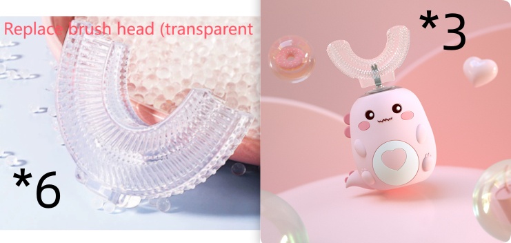 Children'S Electric Toothbrush Food Grade Silicone Oral 360 Degree Automatic Usb Charging Smart Children'S Toothbrush U-Shaped Little Dinosaur Pink set2 2to6 Years Old