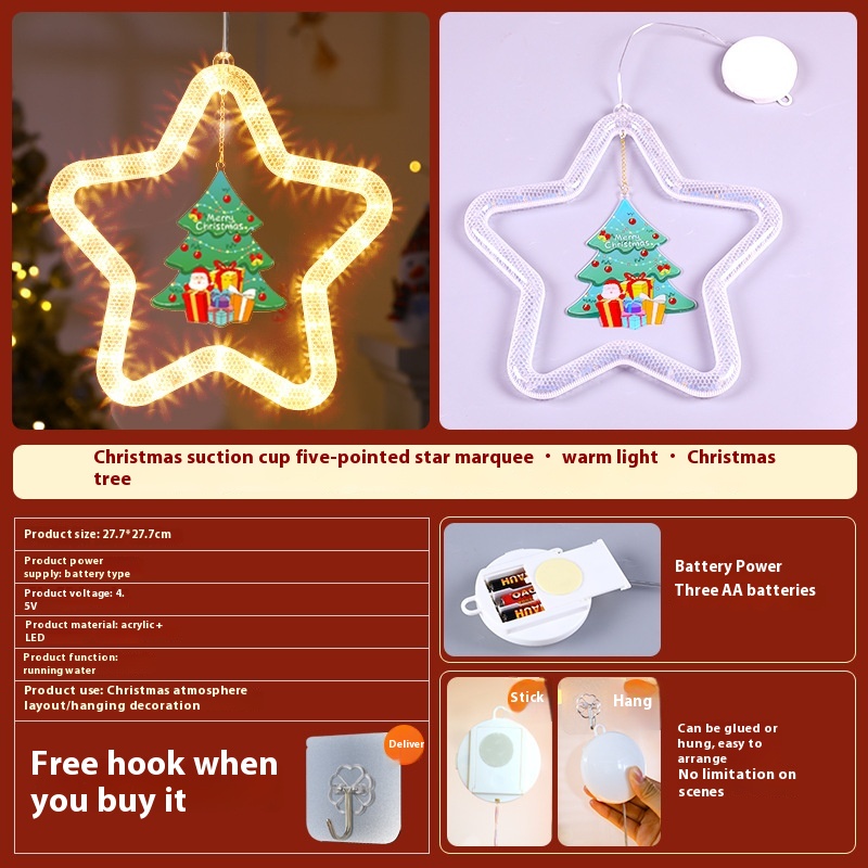 Christmas Pendant Decoration Christmas Atmosphere Led Lights Led Christmas Star Light Decoration For Window Door For Holiday Christmas stocking Battery Type
