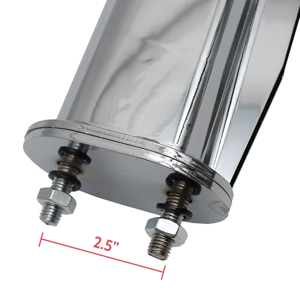 Product Name: Chrome Angled Mud Flap Hanger Bracket for semi Trucks, Bolt Spacing 2.5", 30" L Heavy-Duty Spring Loaded Hangers with Reflective Strip Sticker, Right & Left Side, 2PCS