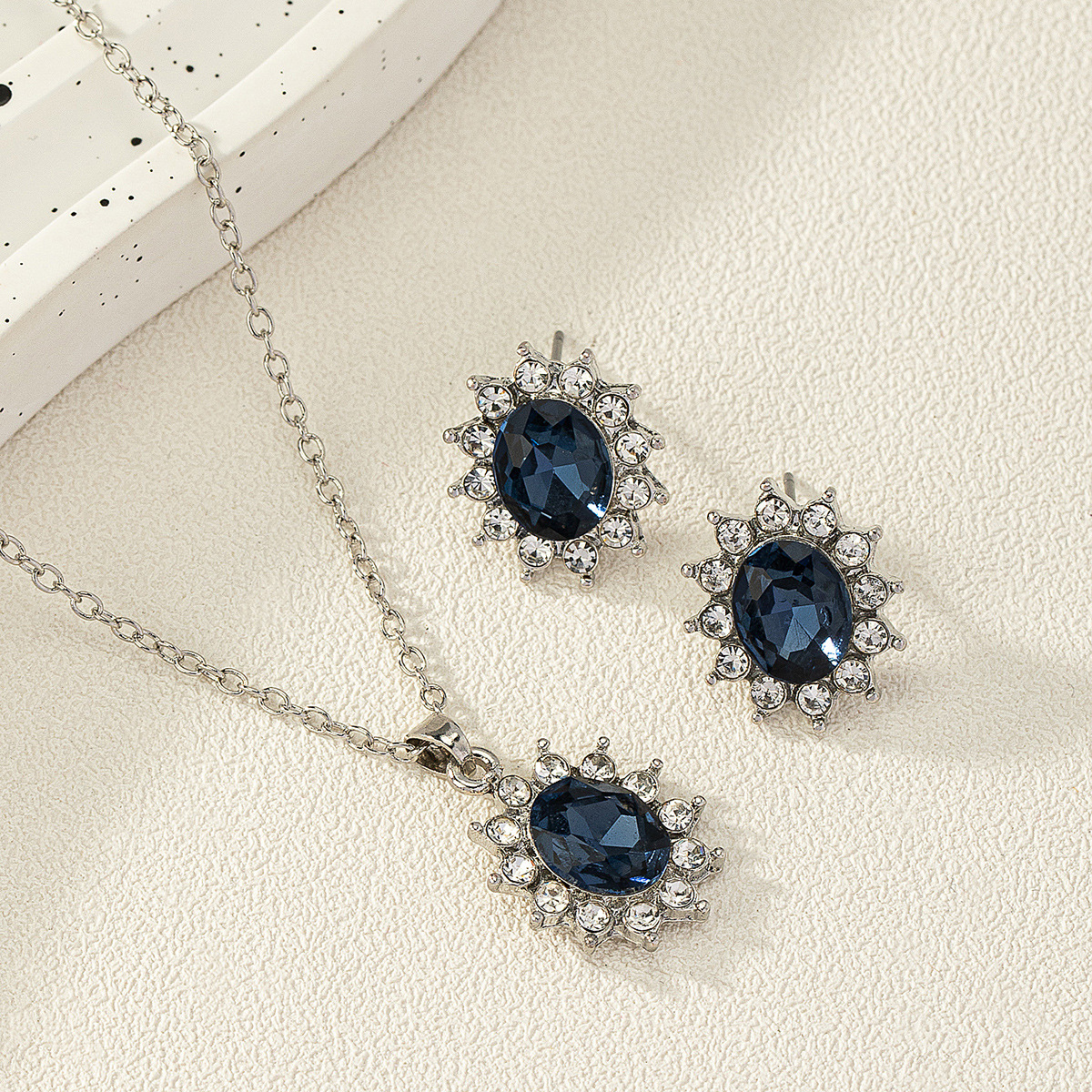 European And American Fashion SUNFLOWER Zircon Ear Stud Necklace Suit Blue