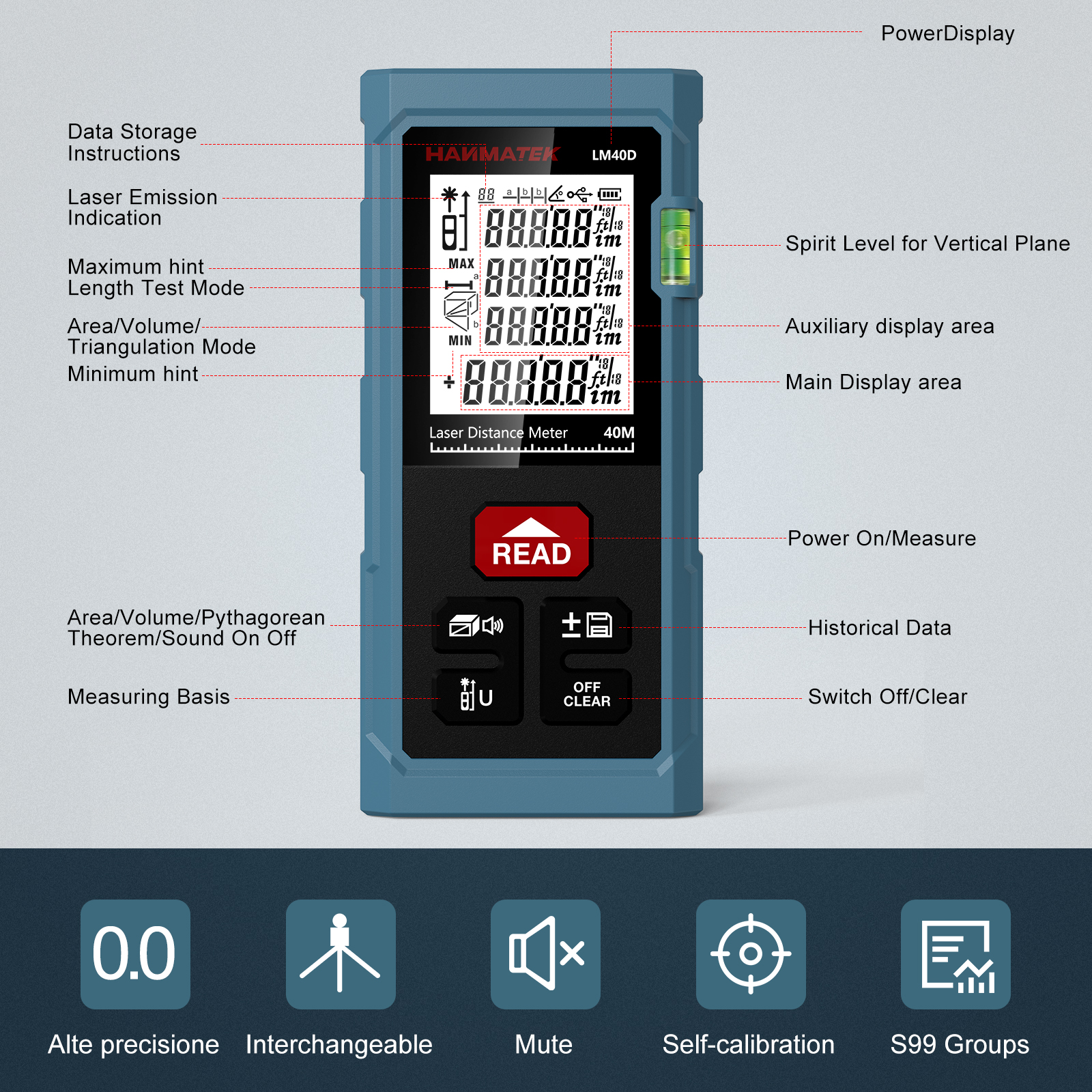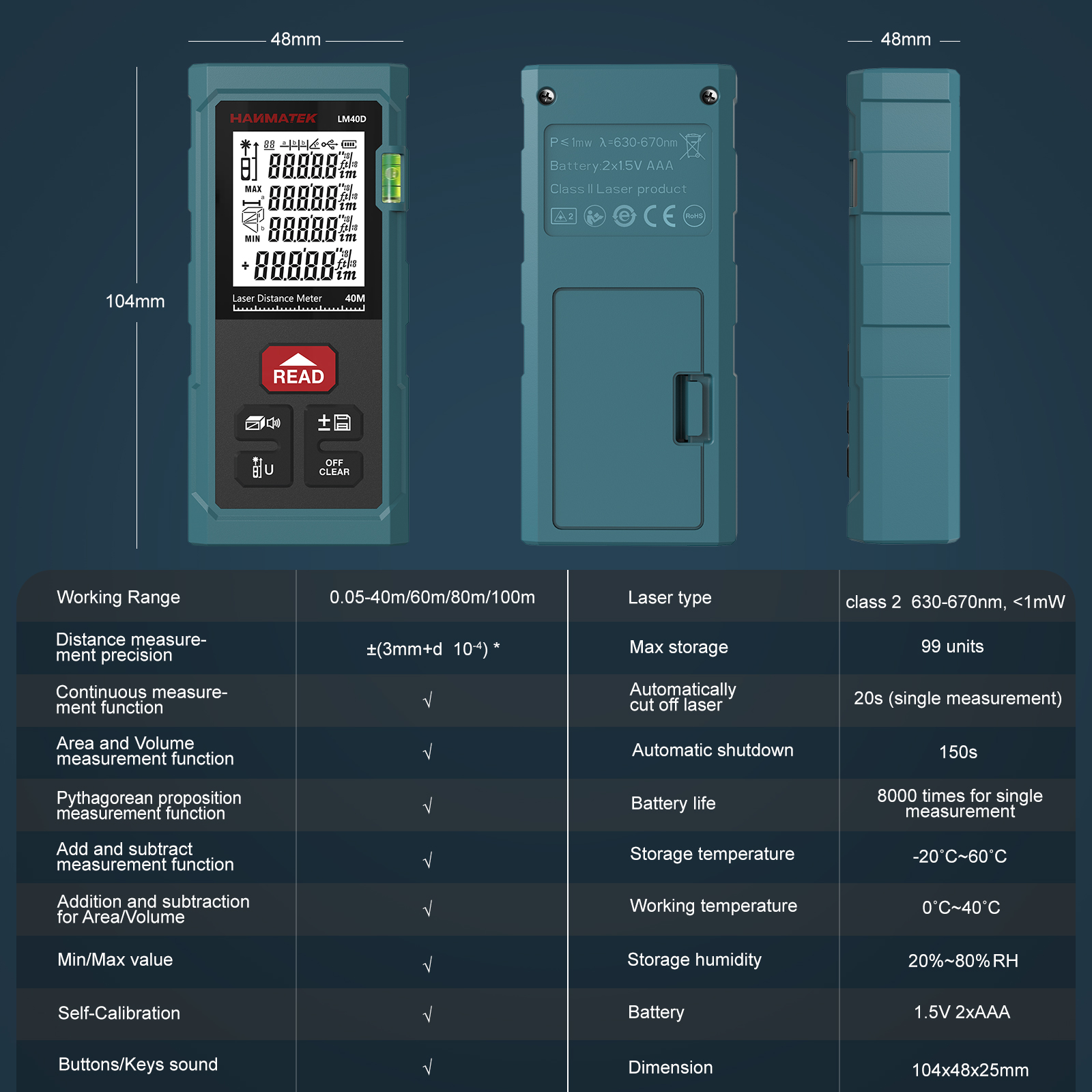 HANMATEK LM40D/LM60D/LM80D laser rangefinder rangefinder area volume measurement