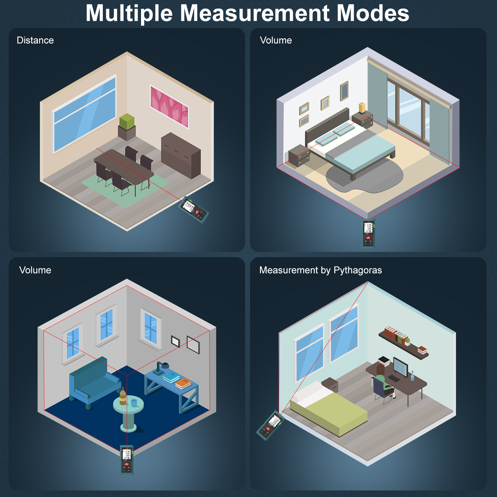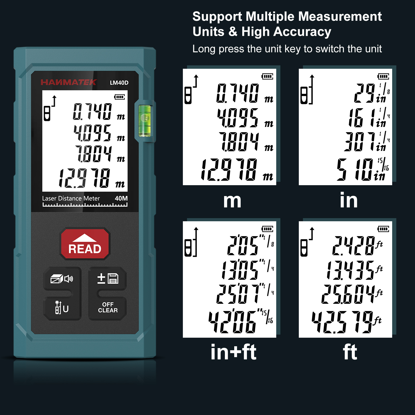 HANMATEK Digital Laser Meter Measure Volume/Area/Angle/Pythagorean Theorem Range Finder Laser Distance Meter Self Calibration