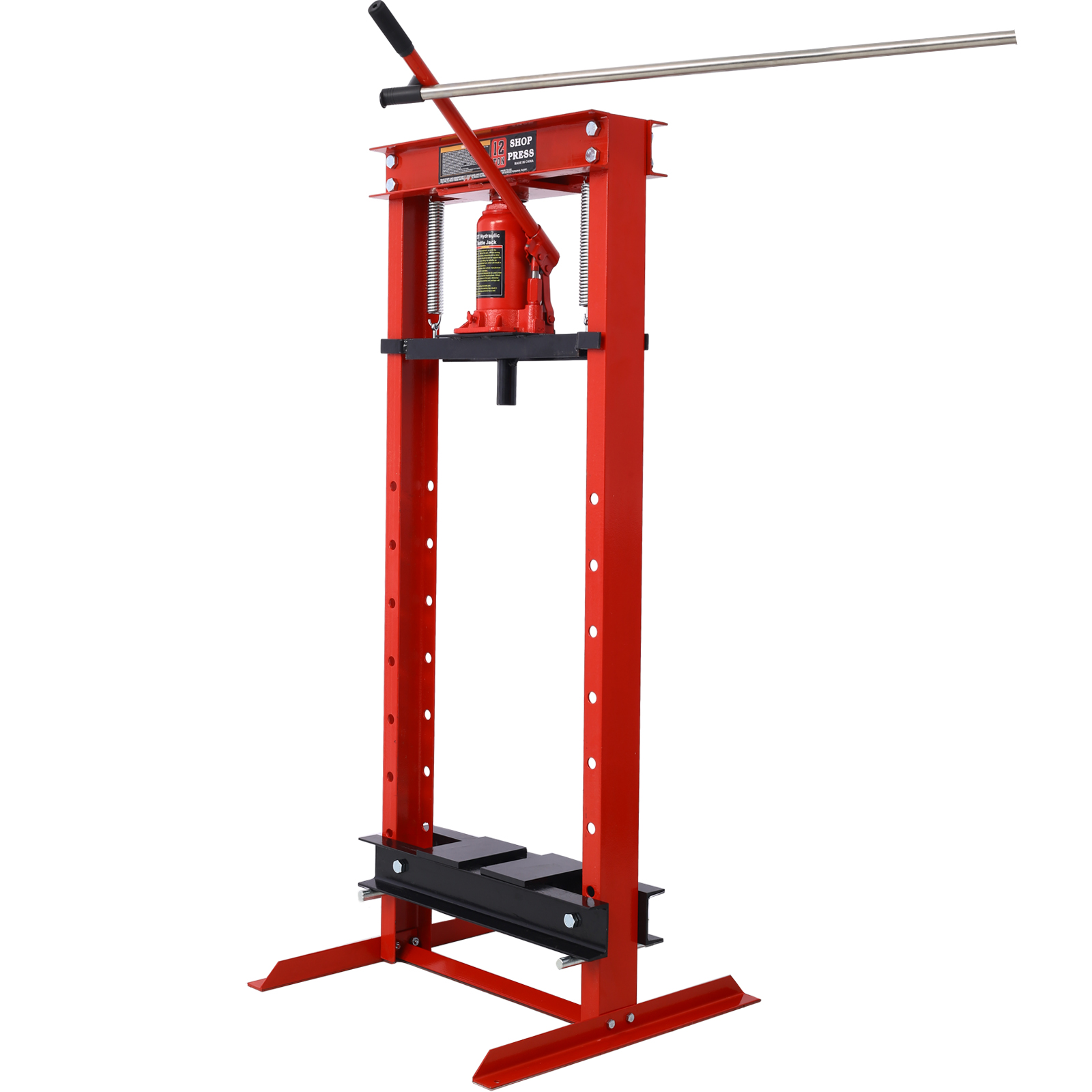 Product Name:Hydraulic Shop Press ,12-Ton Capacity , Floor Mount ,with Press Plates, H-Frame Garage Floor Press, Adjustable Working Table Height,red