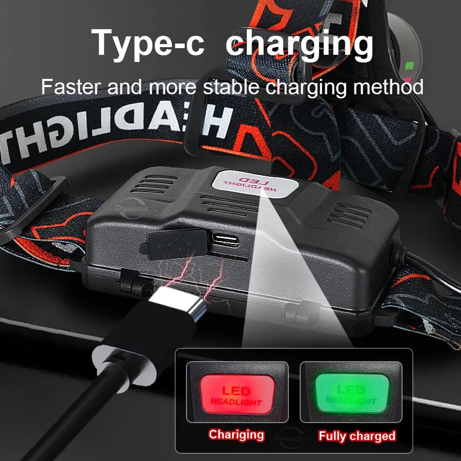 USB-C POWER INPUT: Super bright headlamp comes with 2 x rechargeable batteries make it convenient to be charged from car, computer, power bank, USB charging plug.