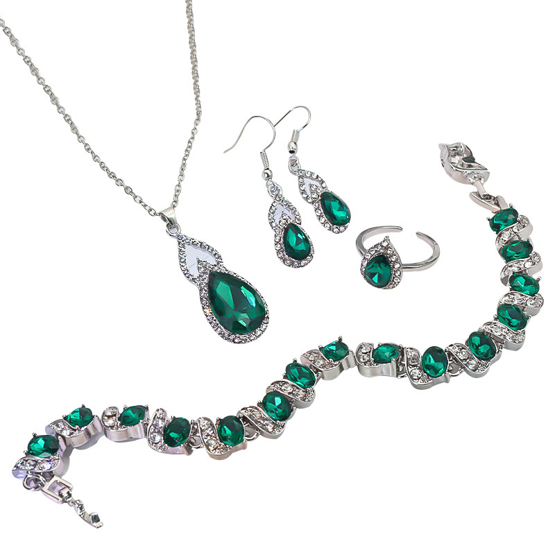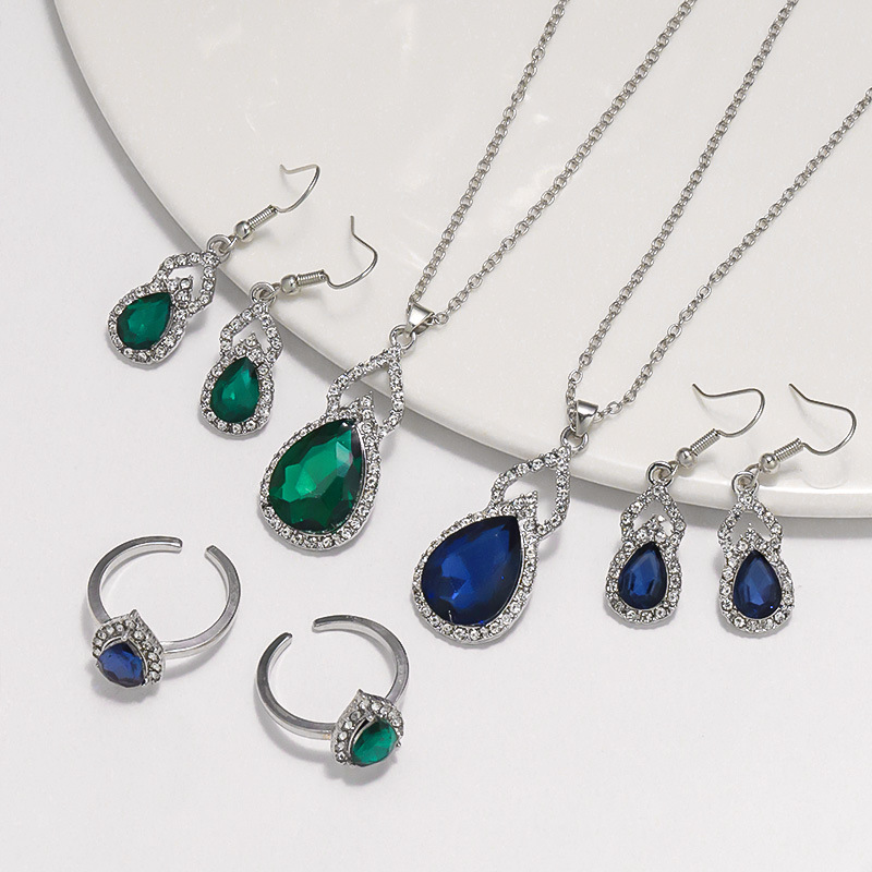 Light Luxury Zircon Necklace Earrings Open Ring Jewelry Suit Blue