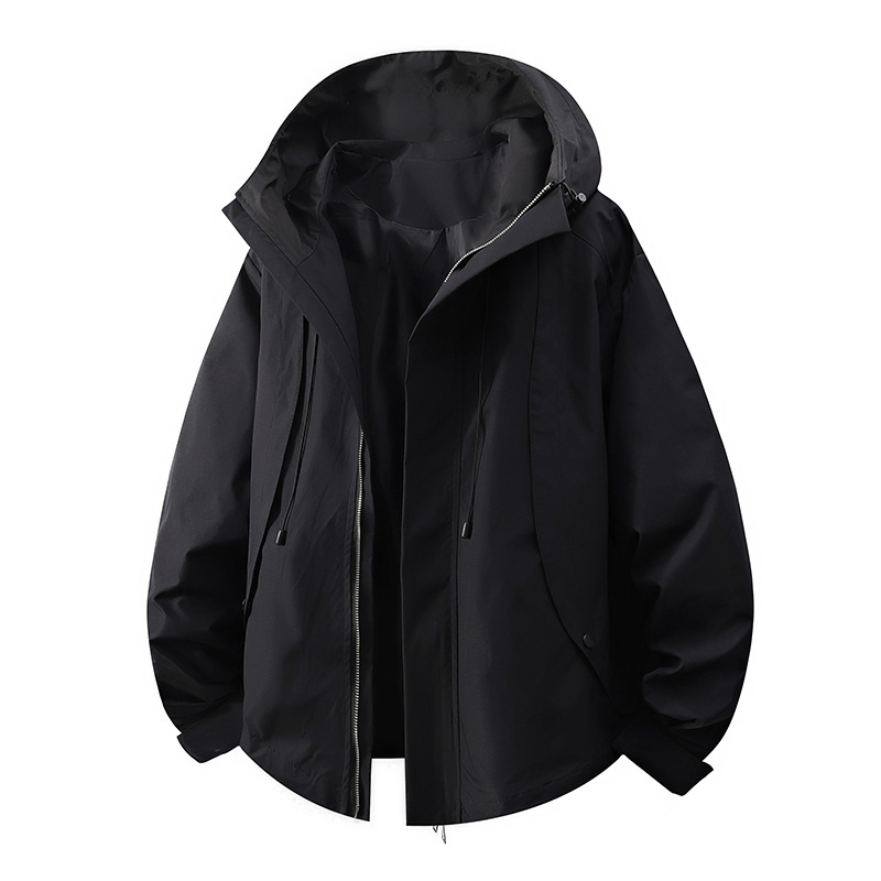 Man Outdoor Hooded Jacket Casual Black 3XL