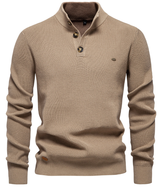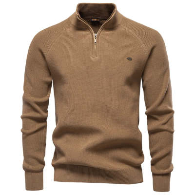 Men's Zipper Stand Collar Knitted Sweater Fashion Slim Solid Color Long Sleeve Half Turtleneck Top Men's Clothing Blue XXL