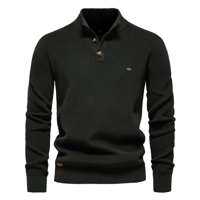 Men's Zipper Stand Collar Knitted Sweater Fashion Slim Solid Color Long Sleeve Half Turtleneck Top Men's Clothing SW833 Black Green XL