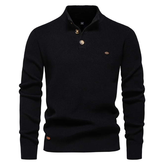 Men's Zipper Stand Collar Knitted Sweater Fashion Slim Solid Color Long Sleeve Half Turtleneck Top Men's Clothing SW833 Black XXL