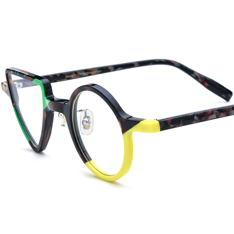 New Round Triangle Glasses Frame For Men And Women Green And Yellow Frame
