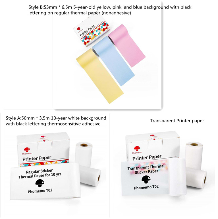 The Phomemo T02 series is a mini pocket printer that does not require ink. The independently developed app is more suitable for foreign users' usage habits. The app supports 10 languages (Chinese, Traditional Chinese, English, Japanese, Korean, Thai, French, German, Spanish, Portuguese) suitable for foreign trade styles. Apple iOS, Android download app, mobile Bluetooth link, built-in high-quality lithium battery, easy to carry, capable of printing images, text, errors, and supporting various specifications of label printing