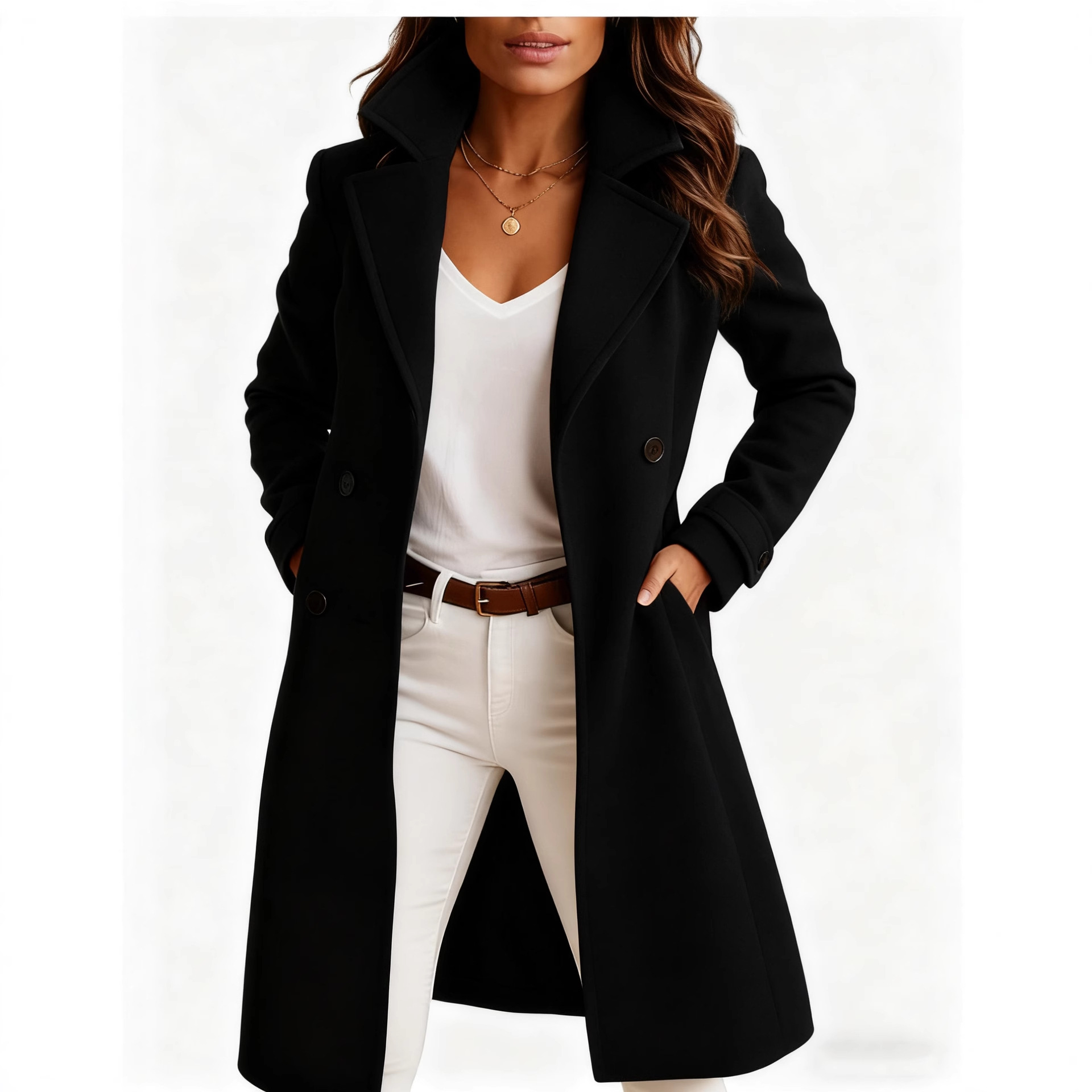 Single-breasted Mid-length Coat With Pockets Fashion Elegant Lapel Jacket Casual Long-sleeved Top Outwear Women's Clothing Black L