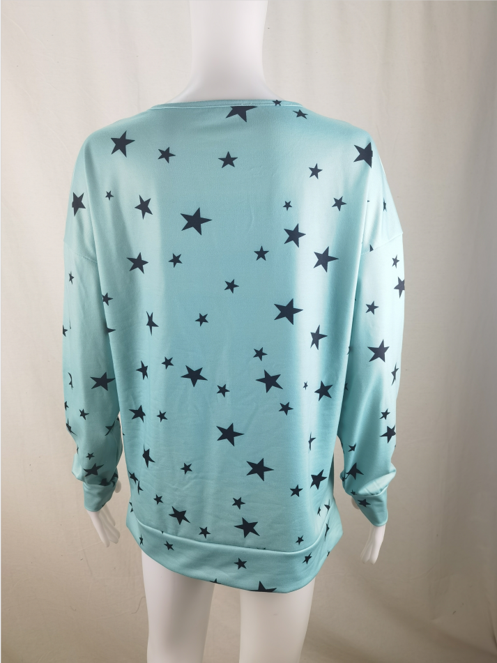 Star Print Long Sleeve Pullover Women's Sweatshirt Purple 3XL