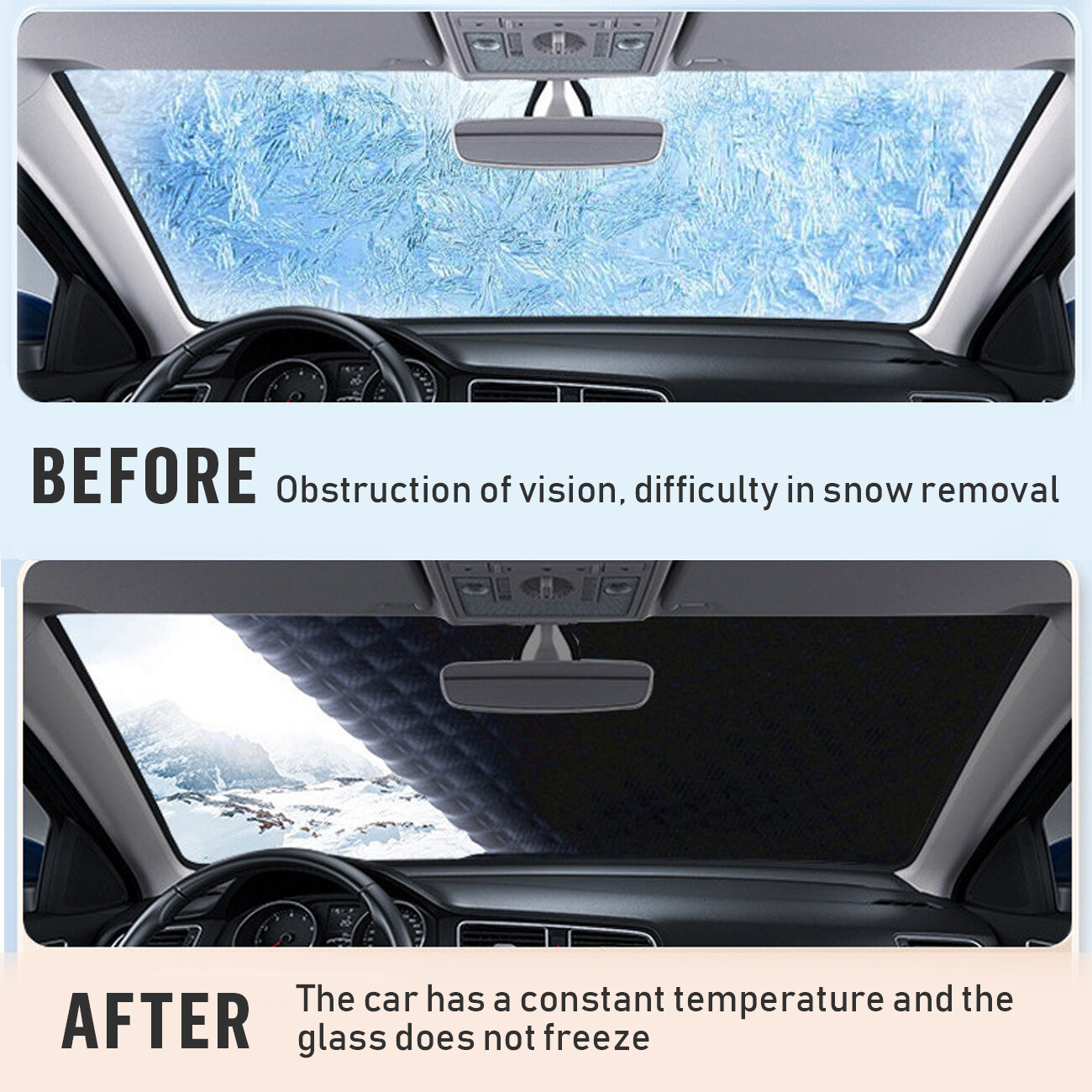1.Thickened Design: 4 Layer Material: (Aluminum foil, Cotton fabric, Cotton, Nonwoven). Automobile windshield can resist sunlight, snow, ice, frost, rain, etc., protect your windshield and provide clear vision.