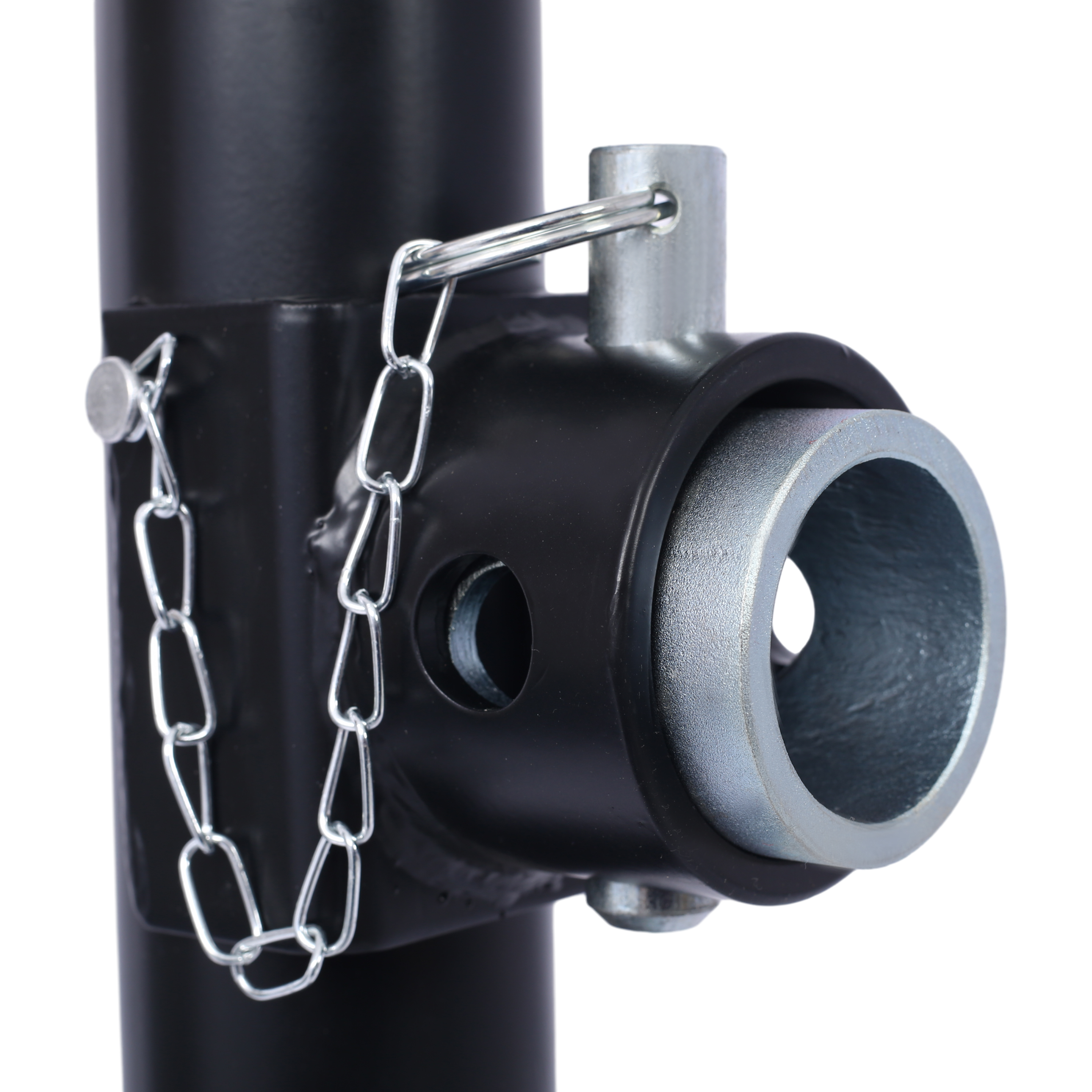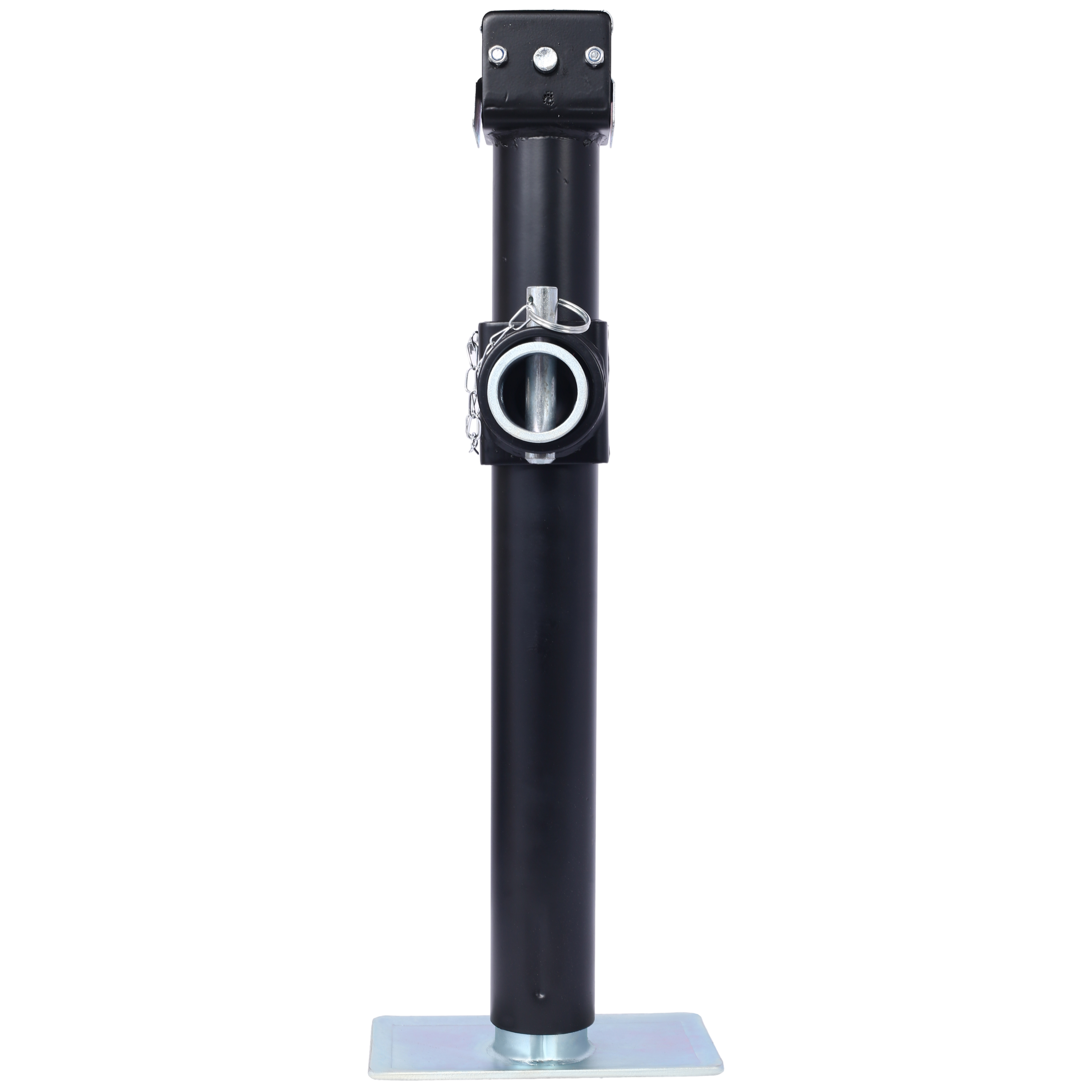 - Versatile Swivel Design: Designed for maximum convenience, our trailer jack features a swivel bracket that ensures ample clearance during towing. The jack easily swings up and out of the way when not in use, with a pull pin mechanism for secure locking into position, allowing for hassle-free towing.